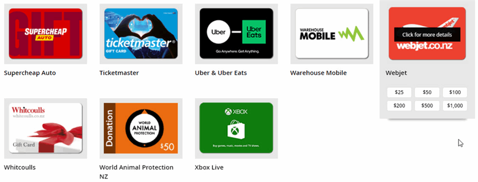 You'll be able to redeem gift cards at more than 30 main retail and service providers (online or in store), or choose to give them to a charity.